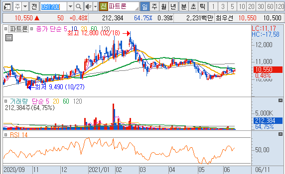 - 파트론의 실적은 2020년 전년 동기 대비 매출액은 6% 감소하였으며, 영업이익은 60.1% 감소하였음.