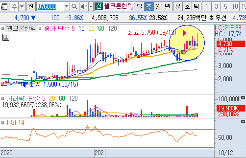 - 웰크론한텍은 리튬, 니켈, 코발트 등 한정된 양극재 소재를 고순도의 양극재 원재료를 결정화해 정제하는 원천기술을 확보하고 있어 관련주로 분류되고 있습니다.